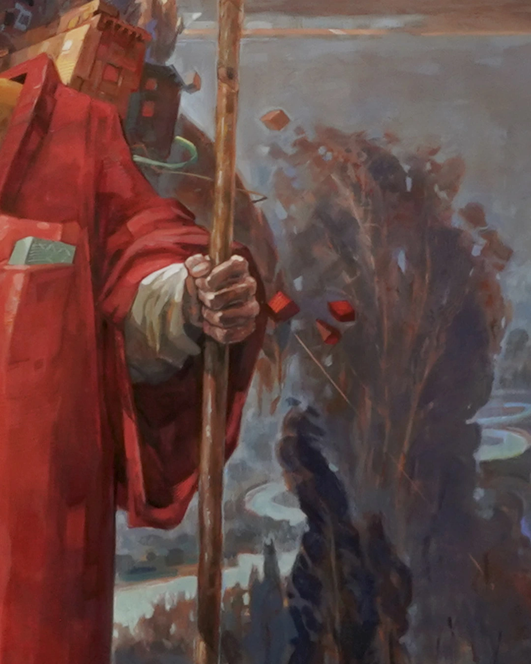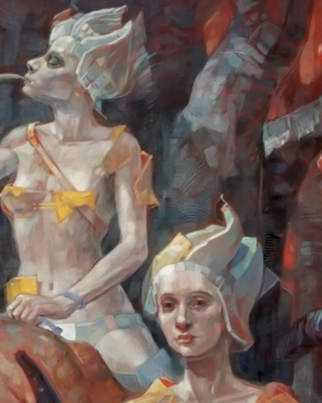Figürlerimi, ait olma hissi, hareketlilik ve geçicilik gibi kavramları ifade etmek için çoğunlukla açık ya da soyut mekânlar içinde kurgularım. Kübik formlu ve kısmen deformasyona uğramış bu figürler, mekânsal etkilerle yoğrularak heykelsi bir yapıya dönüşür.